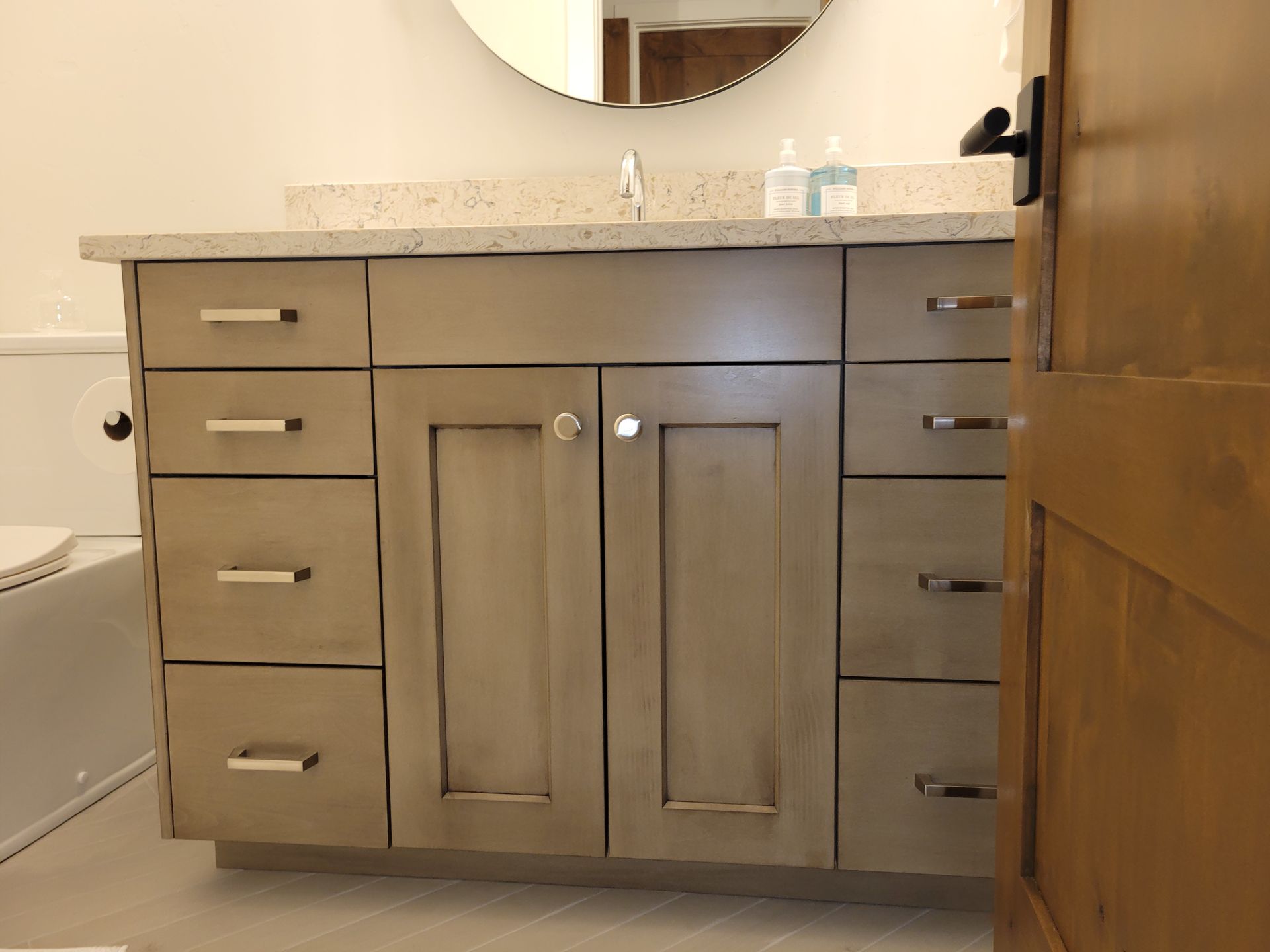 Rustic Modern cabinetry blends the warmth and character of natural materials with the clean lines and simplicity of contemporary design. It often features raw or reclaimed wood, matte finishes, and minimal hardware, creating a balanced look that feels both cozy and refined. This style brings the charm of rustic living into modern spaces, offering timeless appeal with an elevated, handcrafted feel.